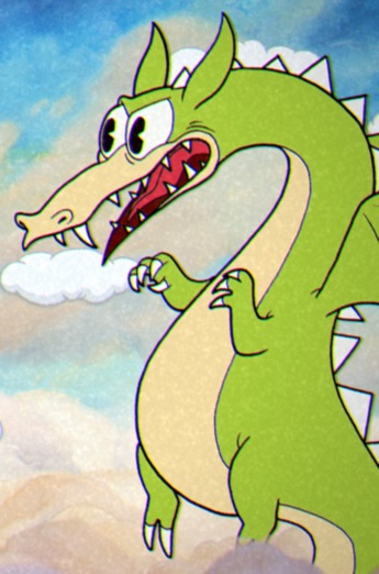 小さな牙と長い尻尾が生えた、どこかで見たことあるような緑色のドラゴングリム・マッチスティック(Grim Matchstick)。見た目に反してやや内気。 強制スクロールする小さな雲の足場を移り続けなければならず、思うように攻撃を回避できないのが厄介。 見た目こそ可愛くなくもないが、エリア2のなかでも難易度は高いボスと言えるだろう。