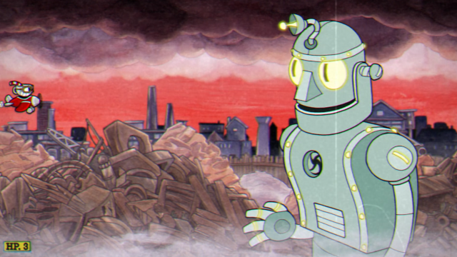 頭だけでも動くカール博士のロボット(Dr. Kahl's Robot)。 契約書の内容からすると債務者は博士ではなくロボットのほうのようだ。 空中戦のステージとなる。