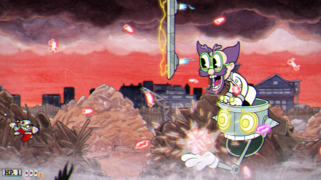 頭だけでも動くカール博士のロボット(Dr. Kahl's Robot)。どうやら撃破しても土下座はしてくれないようだ。 契約書の内容からすると債務者は博士ではなくロボットのほうのようだ。 空中戦のステージとなる。