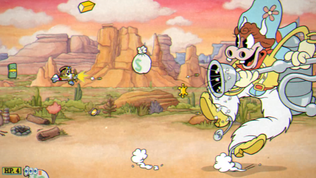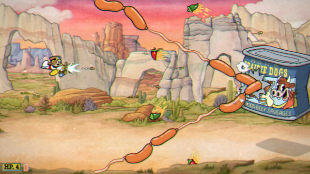 ウィンナーとなったウィンチェスターが、「チャキッ」と缶詰に詰められて第4形態がスタート。(普通に美味しそう) 缶詰の穴からウィンナーを伸ばして、文字通り身を削った攻撃をしてくる。 缶詰の至近距離は危険なのとパリィ出来るチャンスが多いので、スペシャルを使うよりもEXショットをこまめに活用して攻撃しておくと良いだろう。 長かった荒野の決闘もいよいよ決着だ。